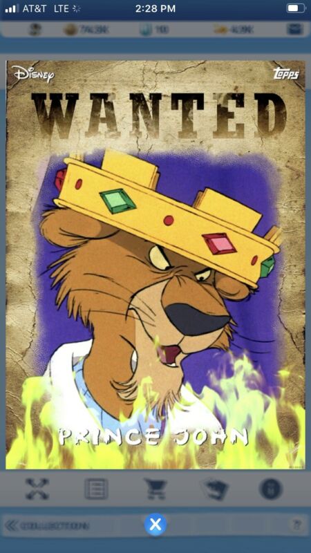 Title (ebay affiliate link): topps disney collect Villains Wanted Fire Series Prince John (Digital Card) SR
