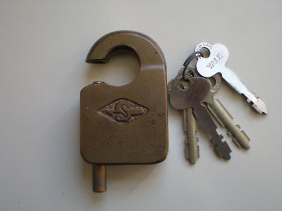 Title (ebay affiliate link): Unusual Antique BRASS LOCK w/ keys PAT. PEND. must see!
