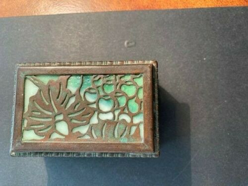 Title (ebay affiliate link): Match safe, Match box holder Bronze w/ Grapevine & slag glass