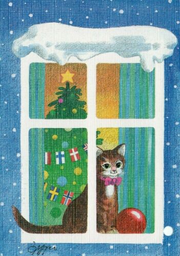 Title (ebay affiliate link): VINTAGE CHRISTMAS GREETING postcard: PRETTY CAT SITTING IN A WINDOW