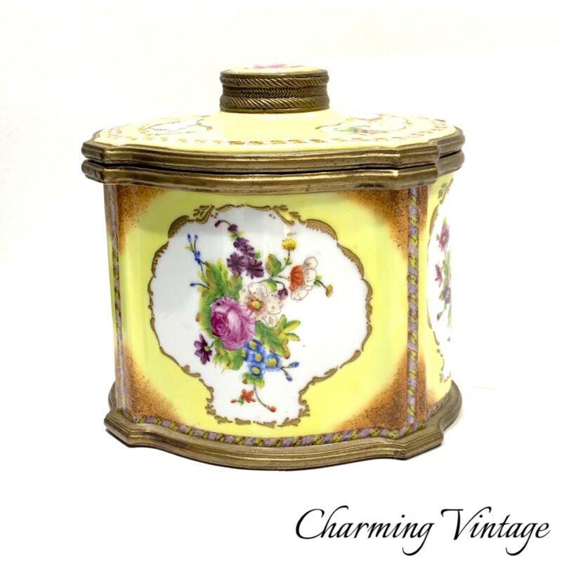 Title (ebay affiliate link): Vintage Antique Estate CASTILIAN Hand Painted Porcelain Floral Covered Hinge Box
