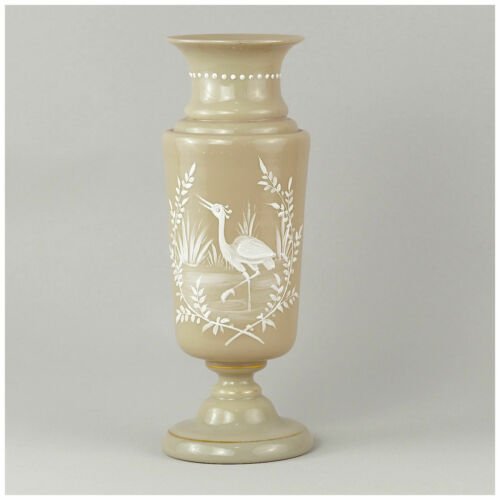 Antique Hand-Blown Egret Heron Bristol Glass Vase
