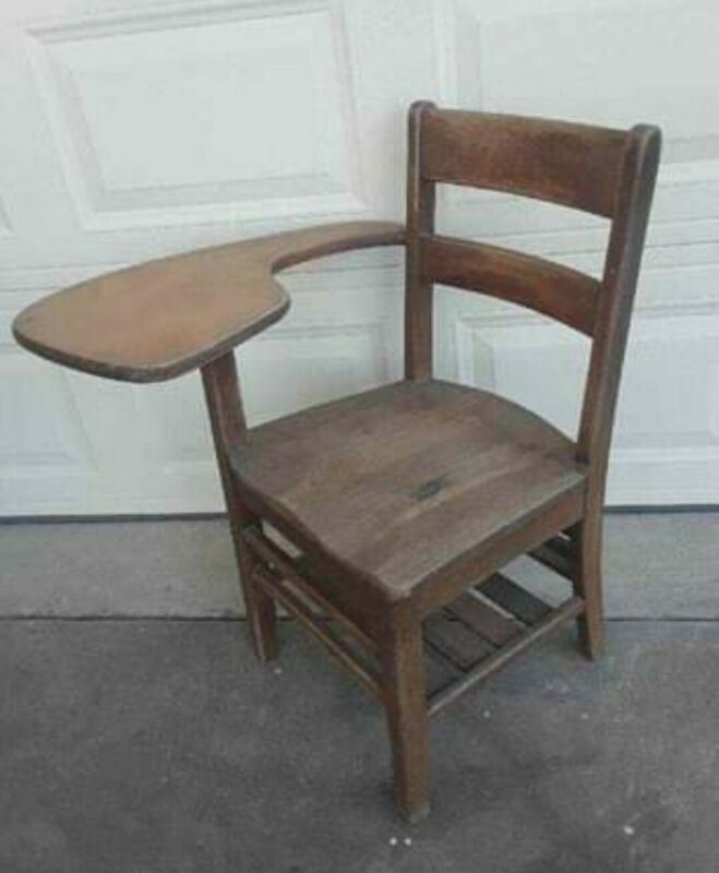 Title (ebay affiliate link): Vtg Elementary Large School Desk Cubby Arm Student Chair Wood Mid Century