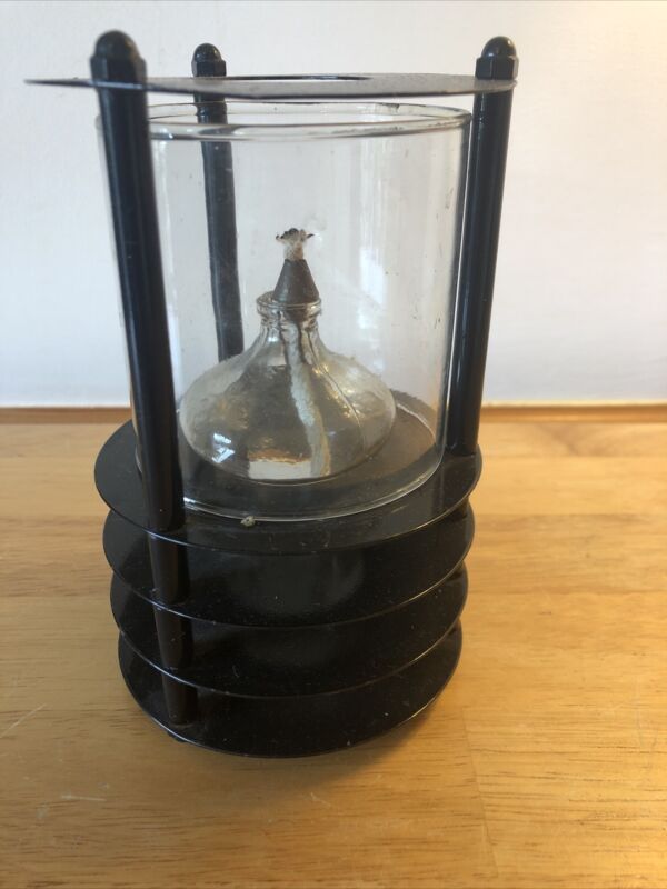 VINTAGE OIL PARAFFIN LAMP GLASS AND BLACK METAL