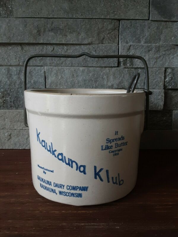 Vinage Kaukauna Klub Crock Stonewear Pottery Metal Clip, no lid