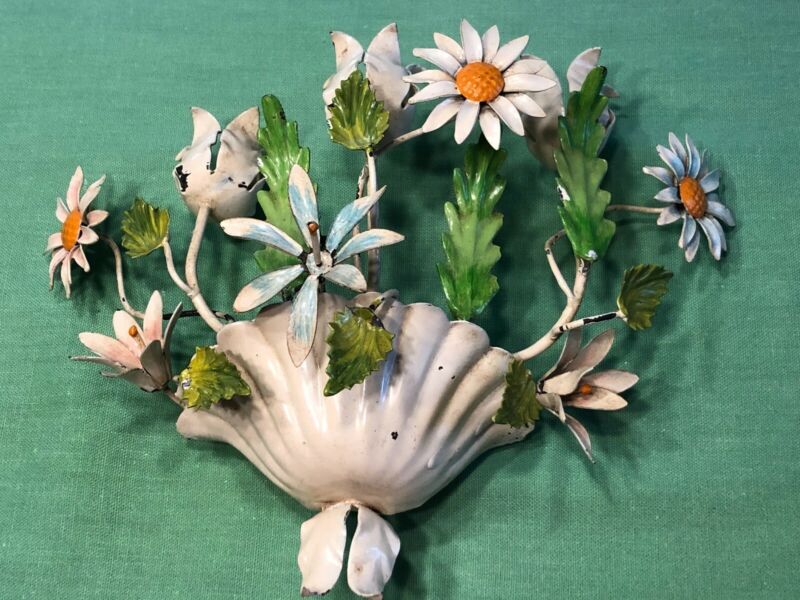 Title (ebay affiliate link): Retro Chic Italian Hand Crafted Tole Flower Wall Sconce, Tulips, Daisy & Lillies