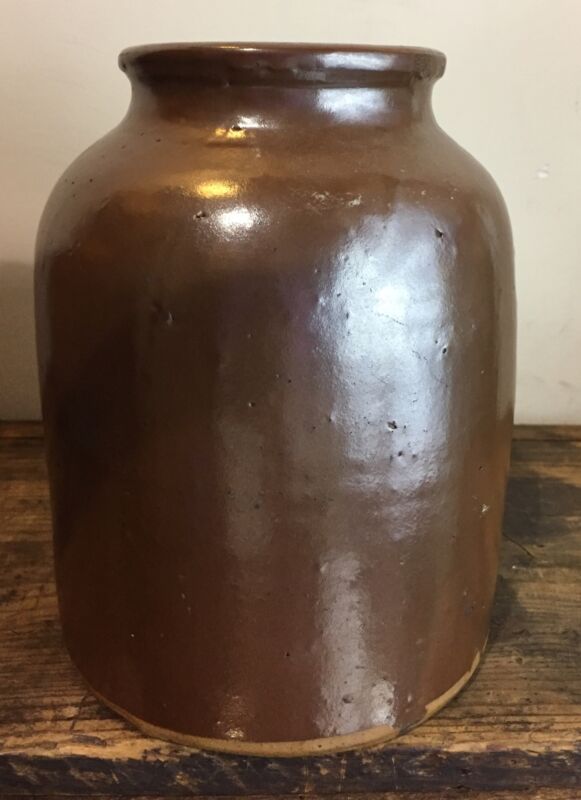 Vintage Stoneware Crock BROWN Glaze Canning Jar Antique Hand Turned Primitive