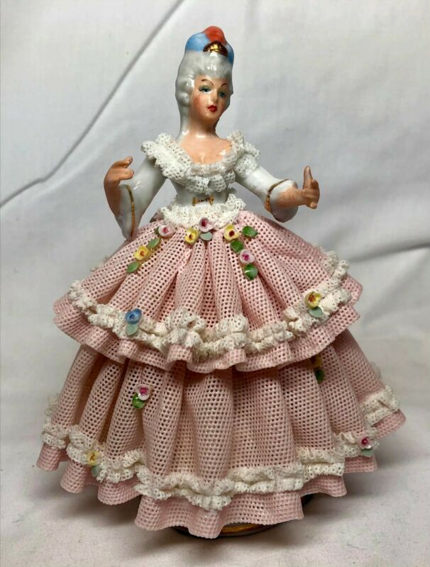 Title (ebay affiliate link): Dresden Lace Figurine Lady Standing with Arms Outstretched - Pink - DAMAGED