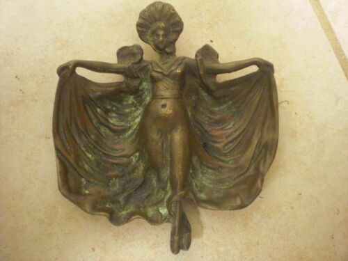 Antique Vintage Cast Metal Art Deco Ashtray / Trinket Dish ? Semi Nude Woman