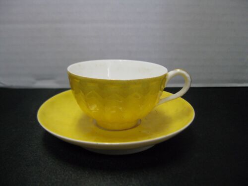 P Quillman T & V Yellow Tea Cup & Saucer Gold Trim USA