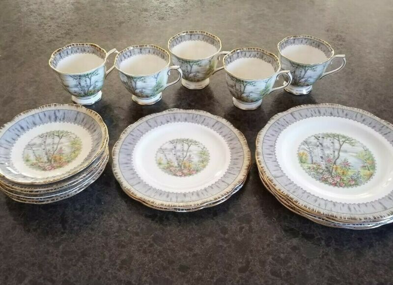 Royal Albert Silver Birch Bone China 17 piece Beautiful