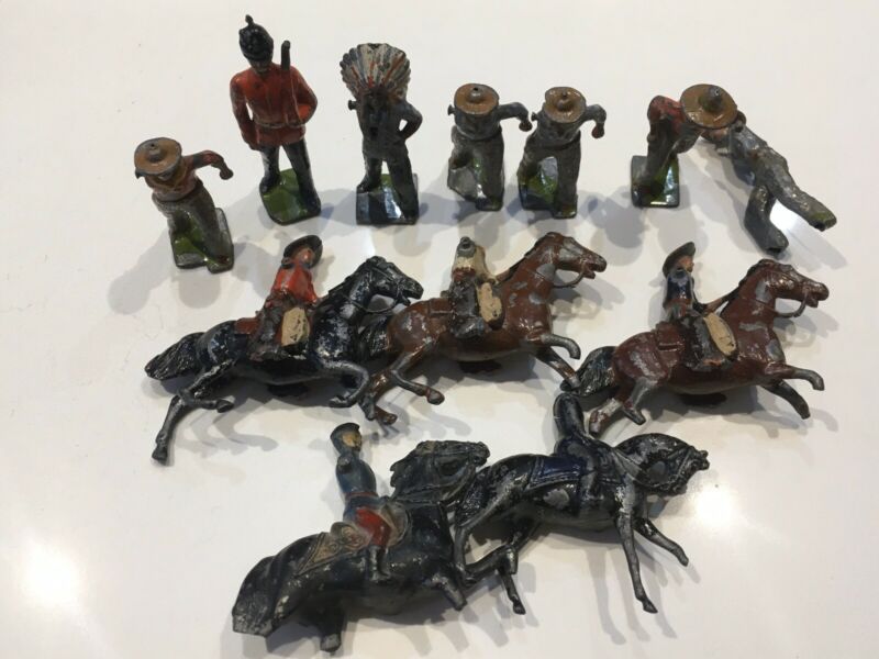 Lot Vintage Metal Soldier Cowboy Figure marked England Copyright Britains