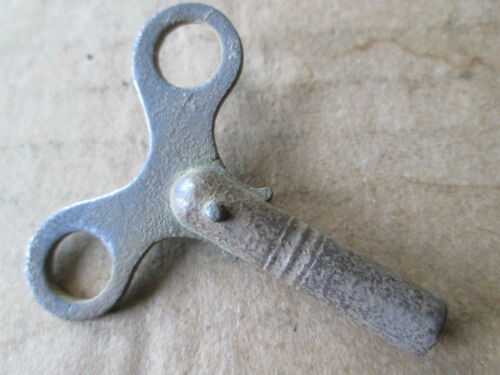 ANTIQUE CLOCK KEY, BRASS, 1 5/8" X 1 7/16", USED