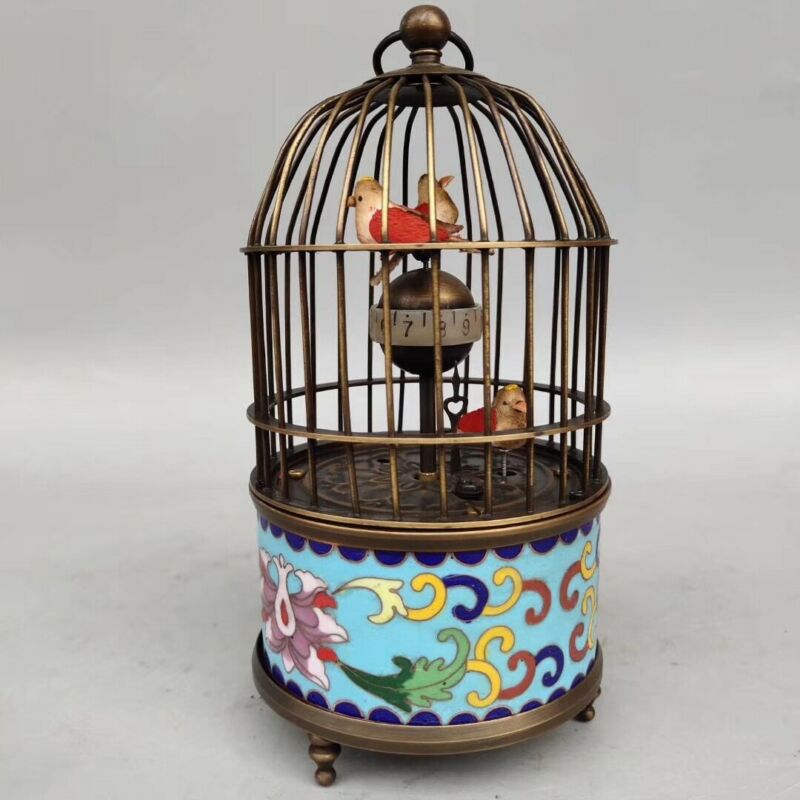 Title (ebay affiliate link): Cloisonne Brass Mechanical Clock Birdcage Shape Alarm Clock Function BS060