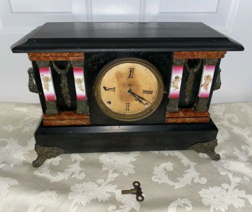 Title (ebay affiliate link): Antique E. Ingraham Co Black Footed Mantle Clock Cherub Pillars Bristol Conn USA