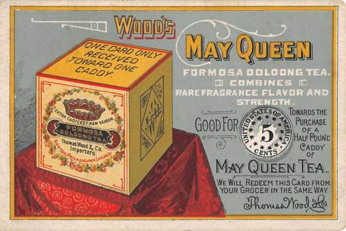 Title (ebay affiliate link): WOOD''S MAY QUEEN TEA ADV TRADE CARD & CREDIT FOR FUTURE PURCHASE, MA LOCATION