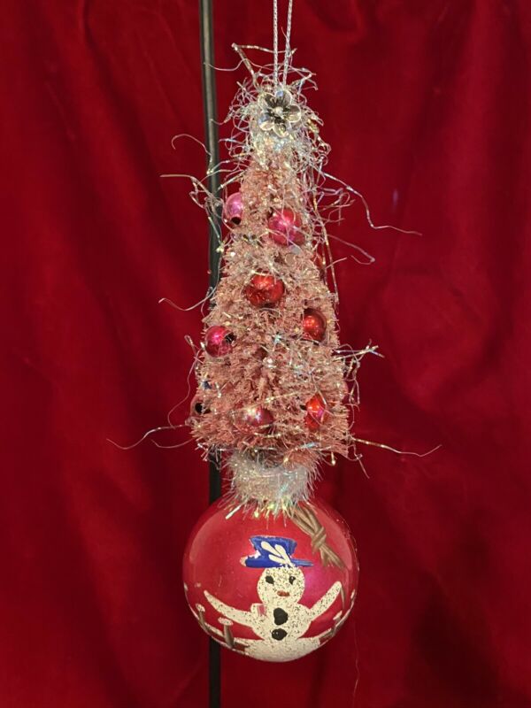Title (ebay affiliate link): Vintage Snowman Mercury Glass Bead Bottle Brush Christmas Tree Ornament