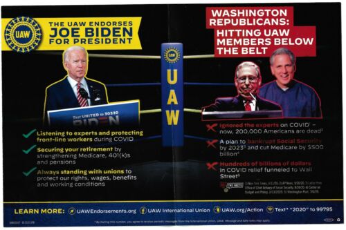 Title (ebay affiliate link): 2020 UAW Union Endorses Joe Biden For President Official Larger Mailer Postcard