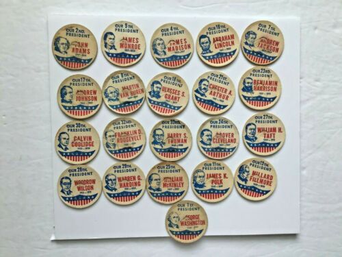 lot of 1960s " OUR PRESIDENTS " series MILK BOTTLE caps (21)
