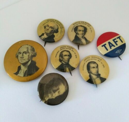Title (ebay affiliate link): Antique Assorted 7 Pinback Pin Pins President Presidential Taft Washington Lot