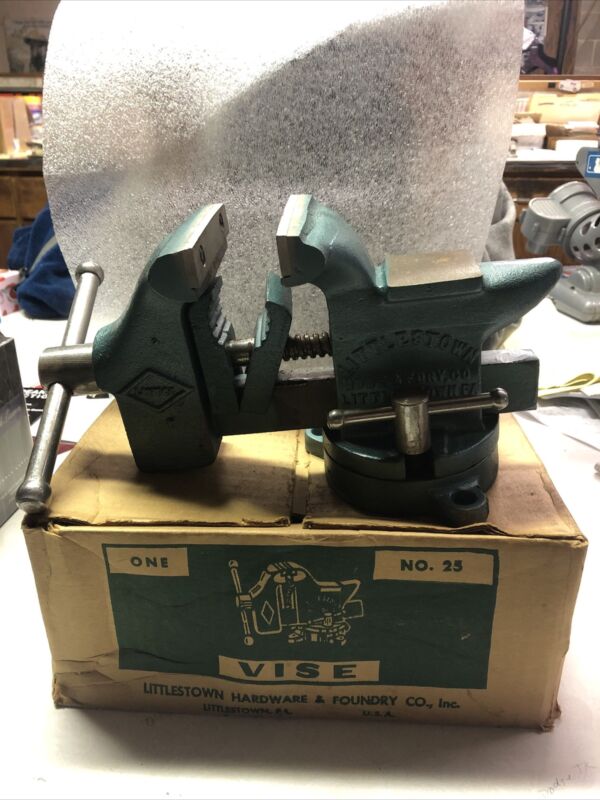 Title (ebay affiliate link): Mint In The Box Vintage Littlestown No 25 Swivel Bench Vise LITTCO PA USA