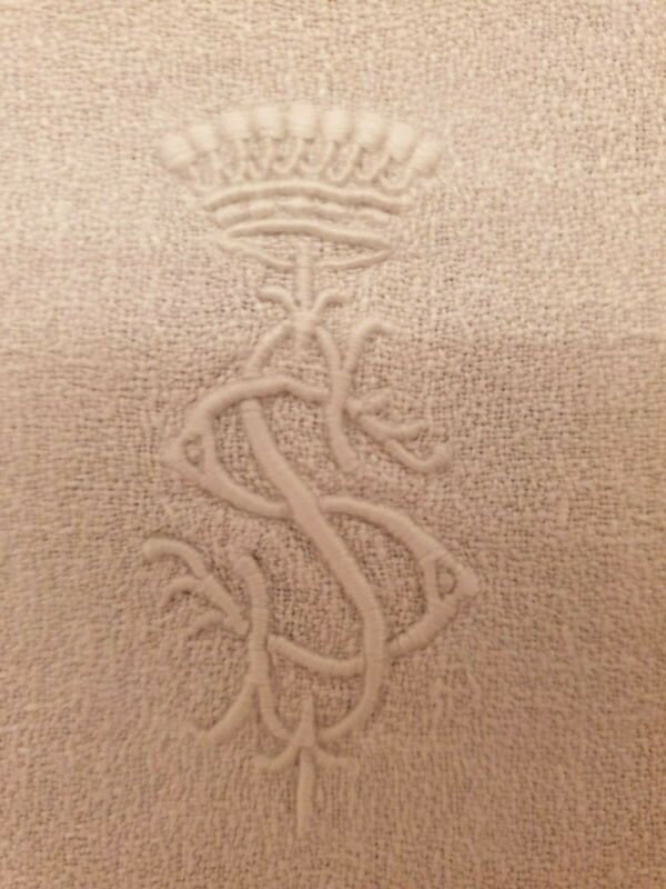 Title (ebay affiliate link): Antique French large white t- towel / baby muslin with whitework of thistle