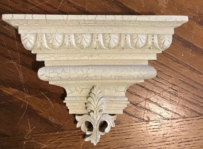 Vintage White With Gold Crackle Mini Wall Shelf