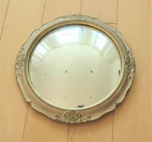 Title (ebay affiliate link): GOLD GILT PLASTER GESSO CONVEX MIRROR GLASS BEADED SCROLLED SCULPTED EDGE