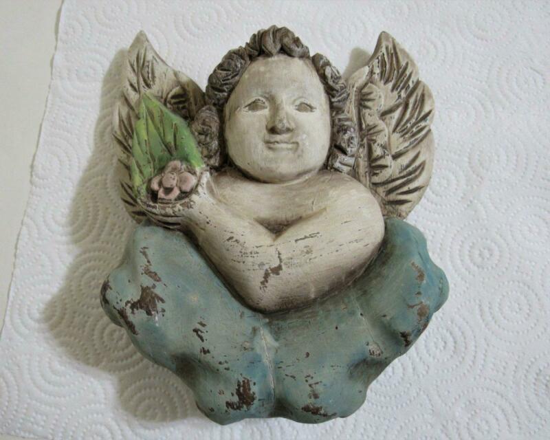 Title (ebay affiliate link): Antique Carved Wood Hand Painted 19th c Putti Angel Cherub floral wall sculpture