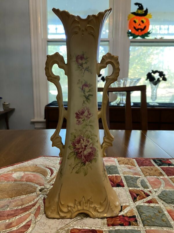 Gorgeous Victorian Vase With Pink Roses! Marked Austria