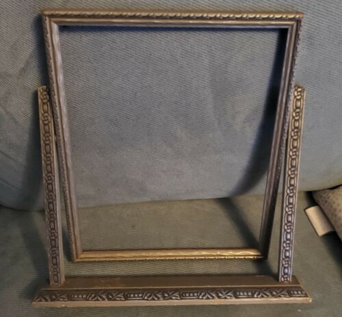 Vintage Tilt Swing Silver Art Deco Picture Frame Hand Carved Wood