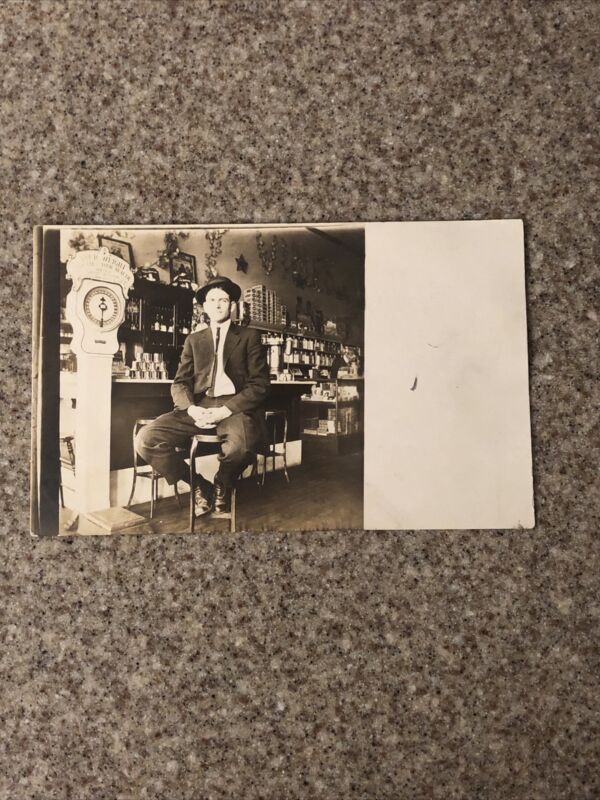 1900s General Store Handsome Man Penny Weight Scale Bull Durham Sign Coca Cola