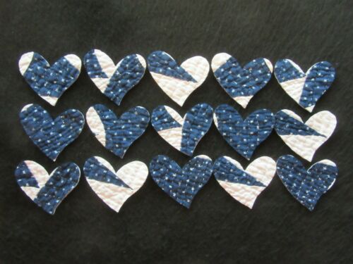 15 VTG PRIMITIVE CUTTER QUILT BLUE/WHITE HEARTS - APPLIQUES!- CARD MAKING!