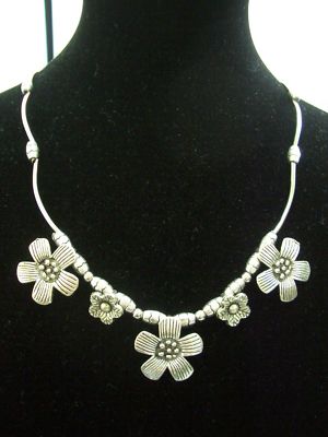 Title (ebay affiliate link): ANTIQUE STYLE SILVER COLOR 5- FLOWERS PENDANT NECKLACE