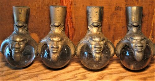 4 antique vintage large 6" glass ball and claw furniture feet, gargoyle faces