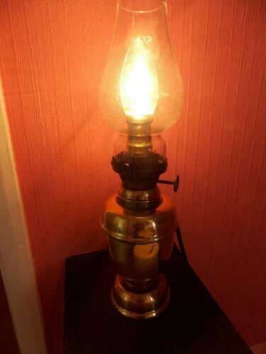 SMALL HEAVY BRASS OIL LAMP CONVERTED TO ELECTRIC