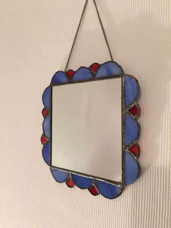 Title (ebay affiliate link): Vintage Hanging Mirror With Stained Glass And Lead Edge Trim