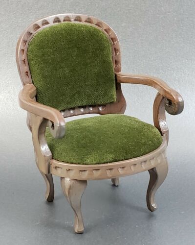 Title (ebay affiliate link): SONIA MESSER DOLLHOUSE FURNITURE GREEN VELVET ARM CHAIR VINTAGE MINIATURE