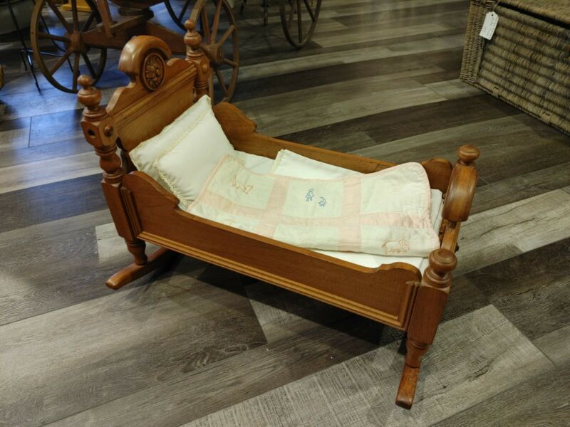 Title (ebay affiliate link): Antique Victorian Walnut Rocking Doll Bed With Linens