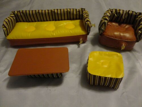 Title (ebay affiliate link): Vintage 1970s Barbie inflatable furniture 4-piece lot, couch & chair, holds air