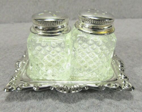 SALT & PEPPER SHAKER SILVER TRAY set Fairy Brand 067