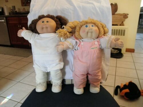 Title (ebay affiliate link): Two Vintage 80s Cabbage Patch Girl Dolls KT IC Tags, Brown, Gold Braids Clothes