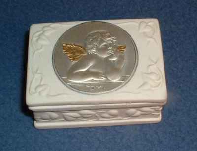 CAPODIMONTE Trinket Box Silver Angel on Top