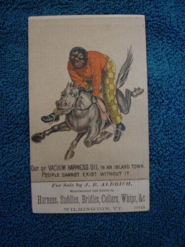 Title (ebay affiliate link): VACUUM HARNESS OIL Victorian Trade Card Wilmington VT Saddles Bridles Collars