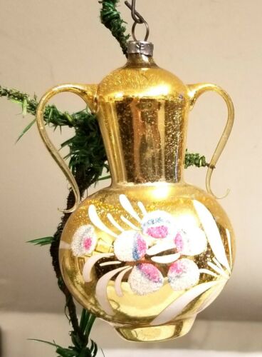 Title (ebay affiliate link): Yellow Coffee Urn, with annealed Handles. Flowers. 1920s Glass German Ornament.