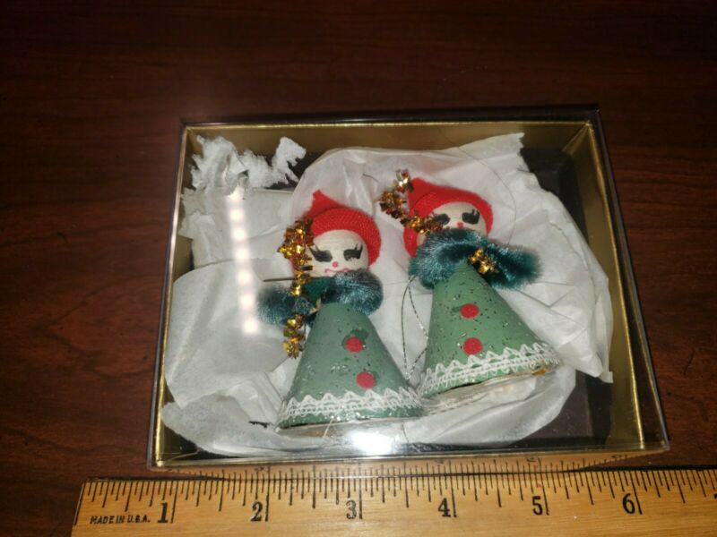 2 ANTIQUE CHRISTMAS ORNAMENTS SPUN COTTON HEADS EXCELLENT