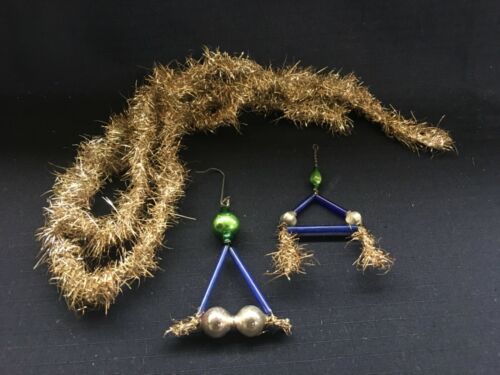 Lot of 2 Antique Christmas Czech Glass Bead Ornaments & Feather Tree Garland