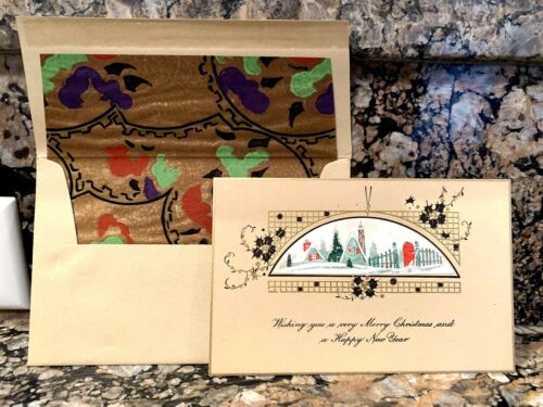 Title (ebay affiliate link): Vintage Greeting Card & Envelope Beige Scene Christmas Art Deco 1920s NEW