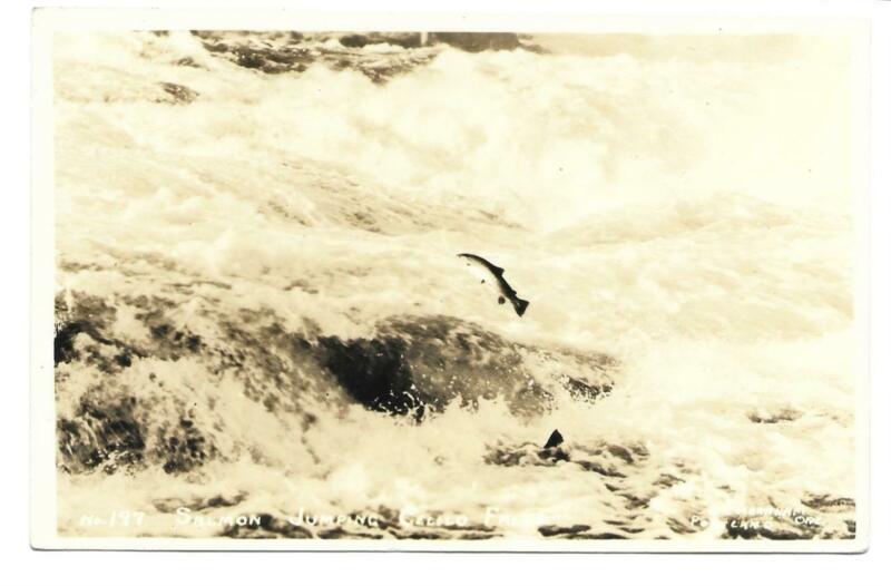 Vintage RPPC Salmon Jumping Celilo Falls (27o)