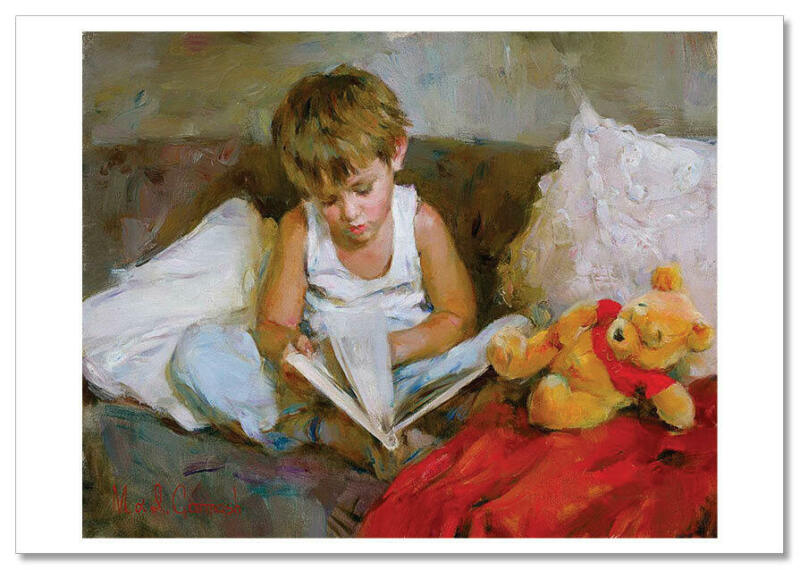 ?ute baby Boy Kids Teddy bear Read book ART Russian Postcard new modern Card #8
